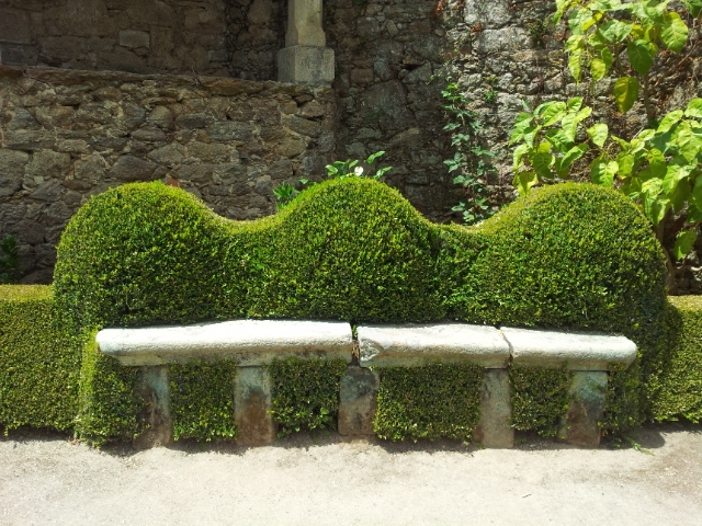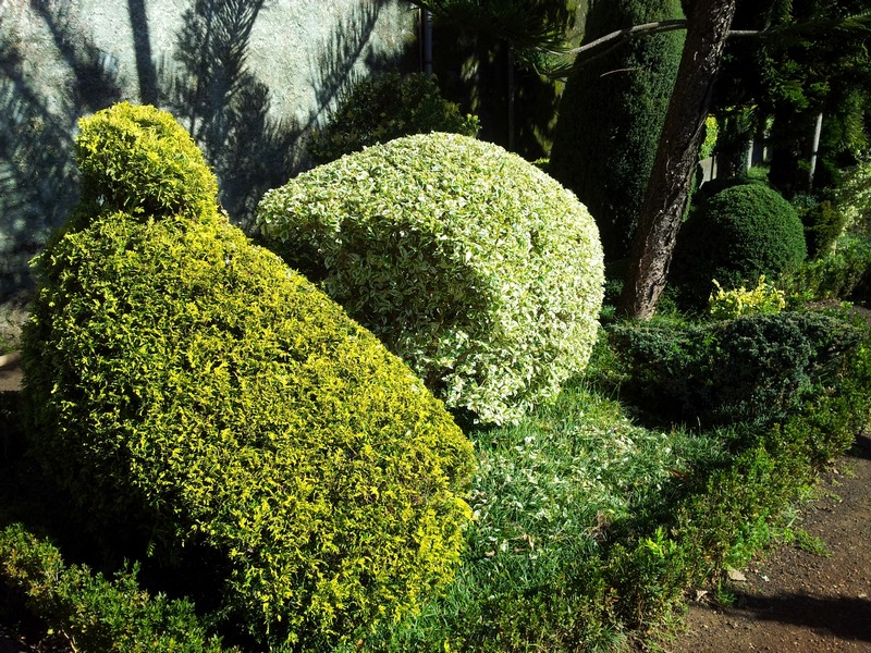 Стриженные кусты и камень.