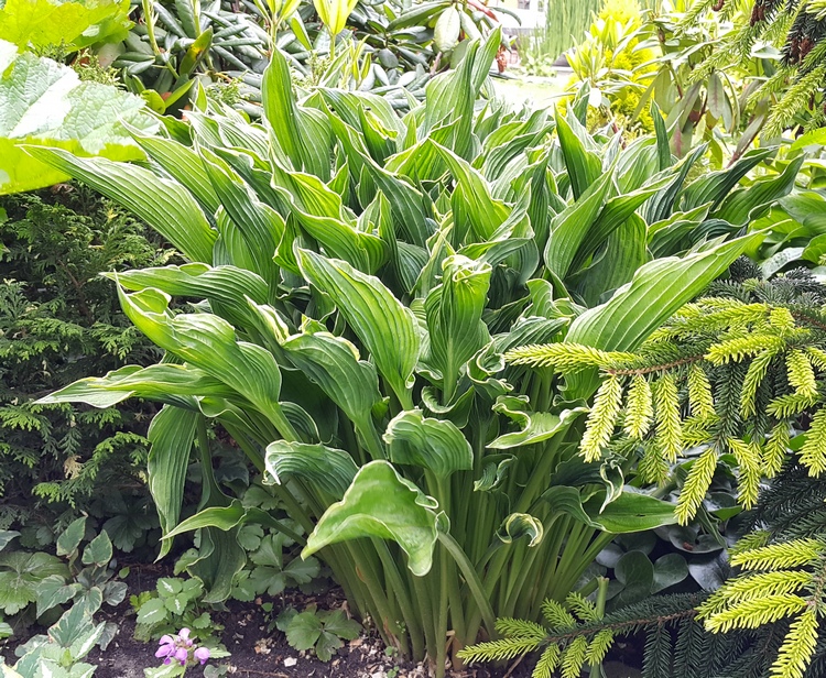 | Undulata Albomarginata | Сильная и быстрорастущая. Лист удлиненный, светло-зеленого цвета с кремово-желтой окантовкой весной и белой летом. Высота около 60 см. | ||||