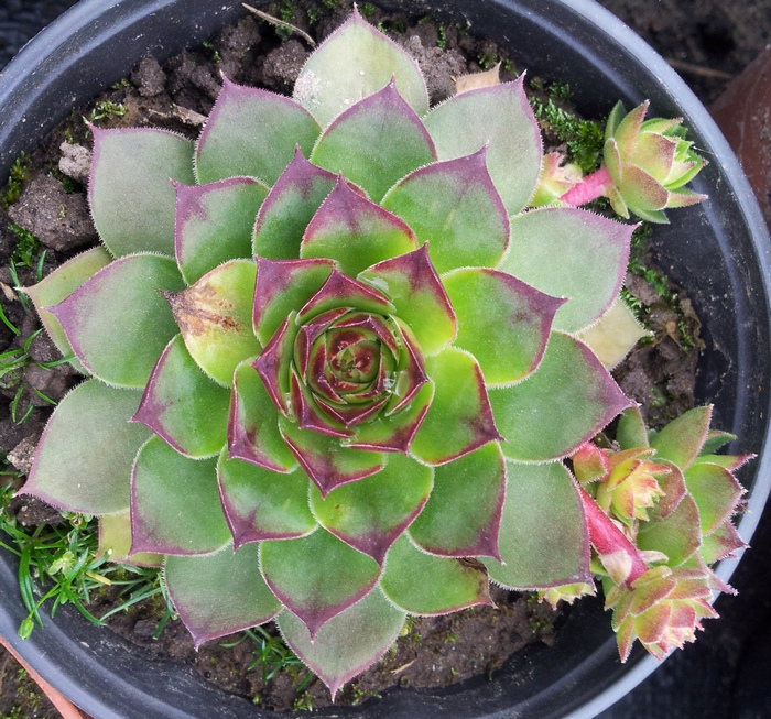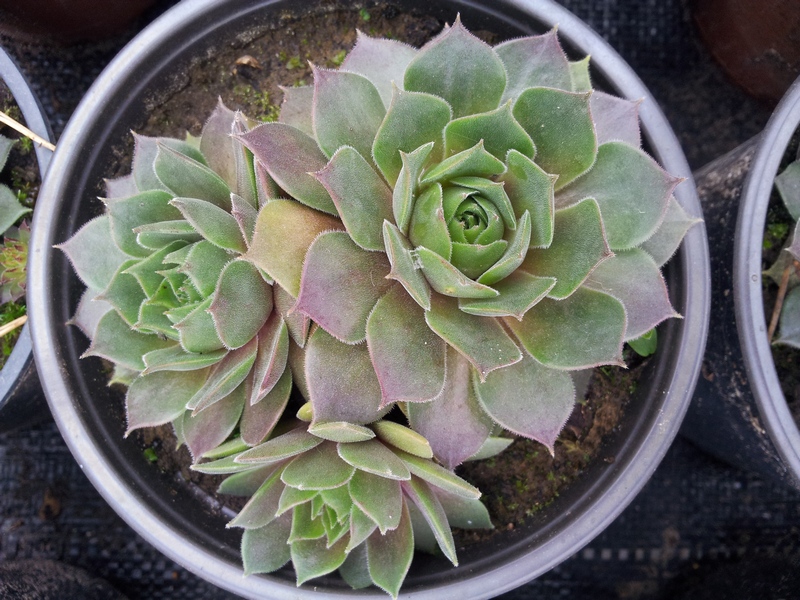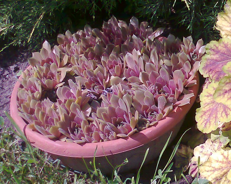 Я собрала большую коллекцию сортов. Образует розетки различной величины от 2 см до 10, в зависимости от сорта. Толстые, кожистые листья. Цветки собраны в соцветия поднимаются на толстом побеге до 20 см в июле-августе. Солнечное, сухое место.