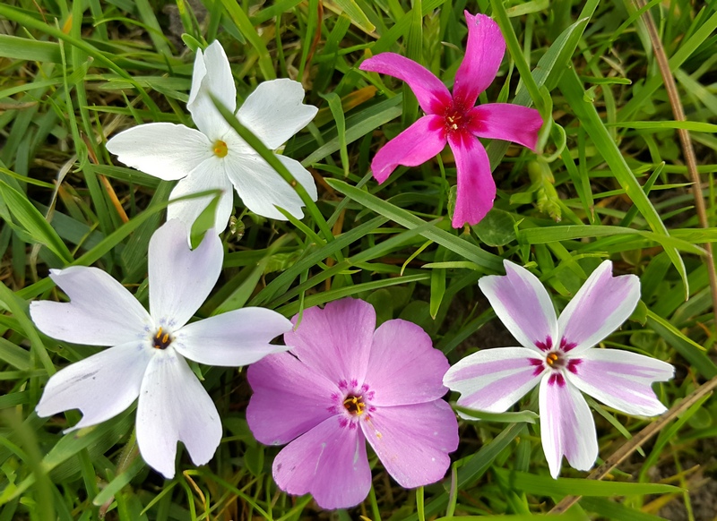| Флокс шиловидный | Вечнозеленый низкий (10 см) многолетник с шиловидными листиками. В апреле-мае покрывается массой белых, голубых, розовых, малиновых цветов, в зависимости от сорта. Не прихотлив. Если растет на полном солнце, то на зиму желательно прикрыть от зимнего солнца. | ||||