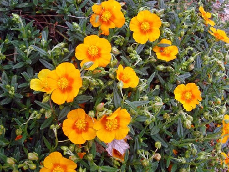 Солнцецвет![]() | Bronzeteppich | Низкий почвопокровный кустарник для альпинариев или для первого плана цветника. Цветет все лето яркими оранжевыми цветами с более темной серединкой. Зимует хорошо. Место надо солнечное и не влажное. | |||