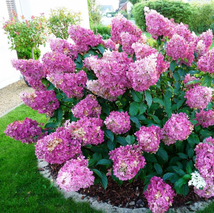 Метельчатые гортензии очень хорошо подходят для малоуходного сада. Она просят минимум внимания. Но, что желательно делать ежегодно, это обрезка. Вот тут есть хитрости. Можно обрезать очень низко каждый год и получать несколько сильных веток с огромными шапками цветов, можно обрезать минимально, тогда соцветий будет много, но и по размеру они будут меньше. А еще, если вы купили карликовый сорт, то обрезать его надо совсем немного. Если высокорослый, можно поэкспериментировать и подобрать тот способ обрезки, который подойдёт вам именно в вашем случае. А в остальном, как обычно - подкормить и полить. | |||||