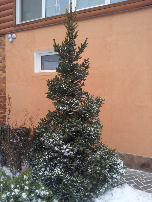Небольшая елочка с узкой пирамидальной правильной формой. Хвоя темно-зеленая, короткая. Растет медленно. К 10 годам - 1,5м высоты. Неприхотлива.