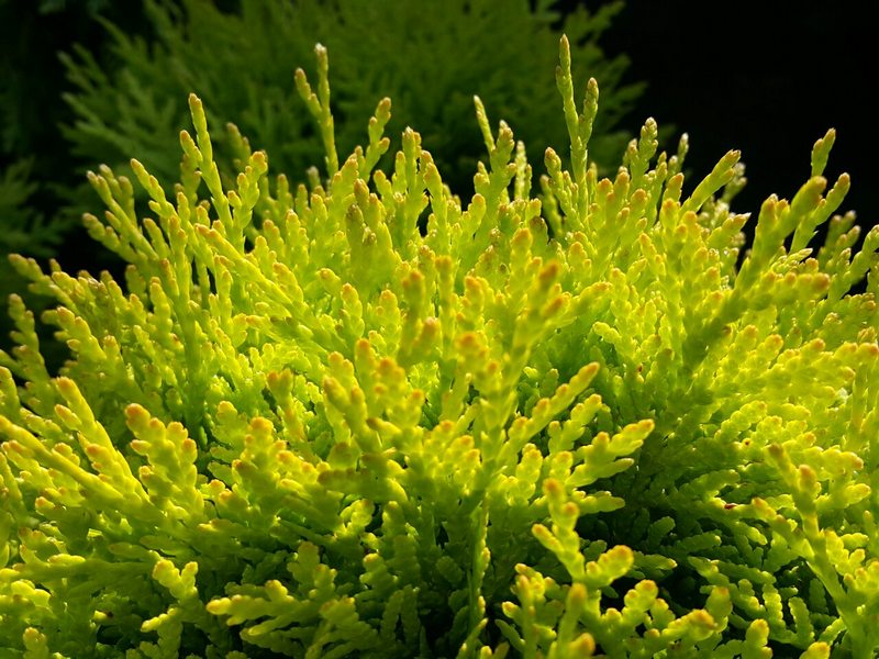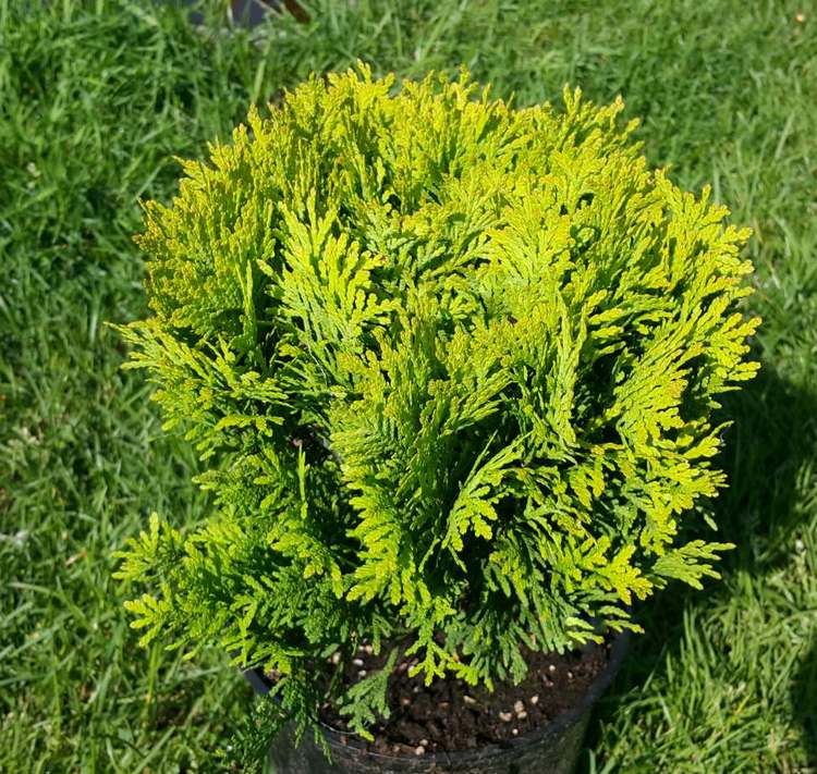 Карликовый шарик благородного желтого цвета. Побеги короткие, плотные. На зиму желательно связывать ветки для защиты от снега. Растет медленно, набирая 0,5м высоты.