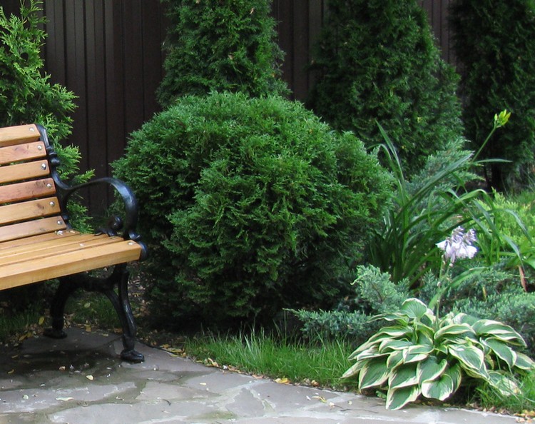 Небольшой, плотный шар, чуть похож на воздушный шарик - верхняя часть немного больше нижней. Хвоя плотная, жесткая, зеленая с сизым оттенком. Хорошо держит зимний снег. В высоту постепенно набирает 0,8м.