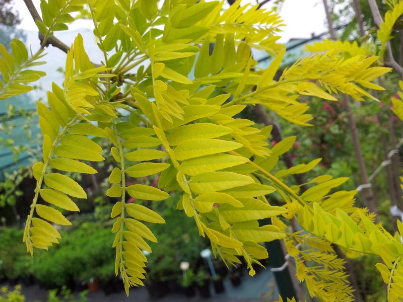 Гледичия трехколючковая![]() | Sunburst | Небольшое дерево с ажурной, неправильной кроной. По стволу и веткам разбросаны букетики колючек. Мелкие белые цветочки появляются в начале лета. Молодые листья пронзительного лимонно-желтого цвета, летом желто-зеленые. | 15Ра-160 | ||