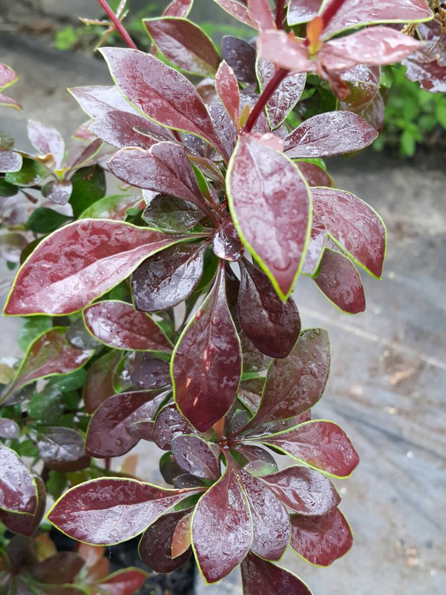 Барбарис Тунберга | Rosetta | Красивый, яркий куст около полутора метров. Лист красно-пурпурный с розовыми и серыми брызгами. Окраска куста меняется в зависимости от освещения, чем больше солнца, тем ярче окрас. | 20,3 | ||