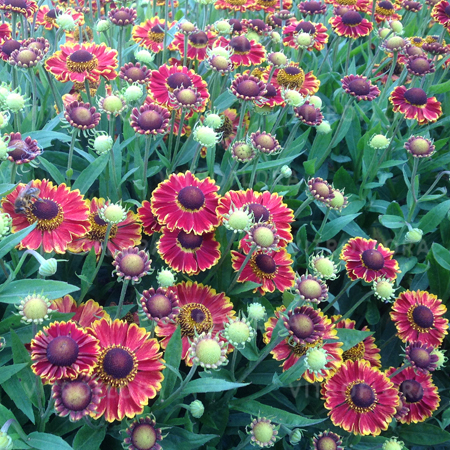 Гелениум | Poncho | Новый сорт карликового гелениума. Высота около 0,6 м. Цветет во второй половине лета яркими красно-бордовыми цветами с желтыми тычинками. Неприхотлив, место посадки солнечное. | |||