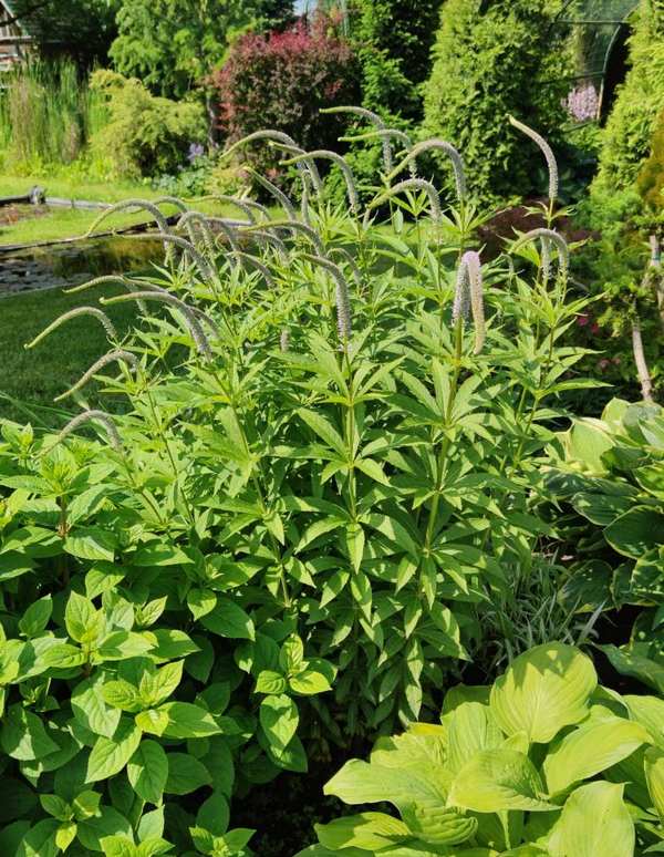 Вероникаструм | Плотный травянистый куст с резными листьями. Цветет летом красивыми, лиловые цветами, собранными в метелки. Неприхотлив. Высота с соцветиями около 89-90 см. Место посадки солнце, полутень. | ||||