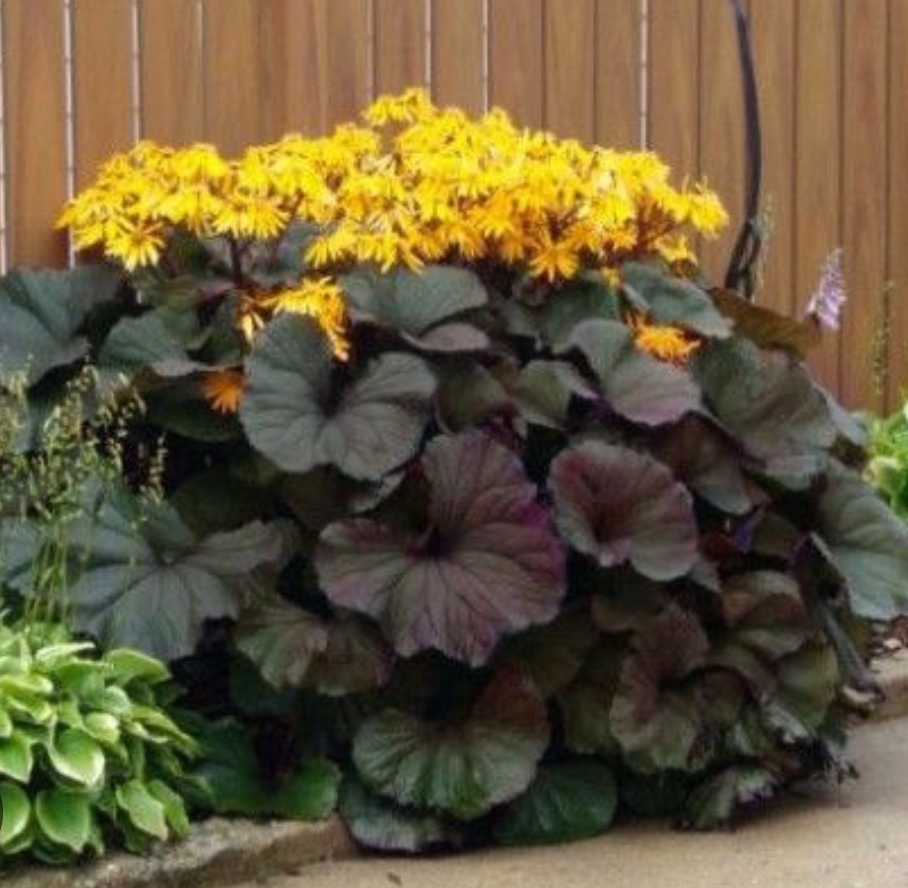 Бузульник![]() | Britt Marie Crawford | Лист округлый, очень темный, глубокого бордового цвета. Цветы желтые, многолепестковые, по форме нипоминают ромашку. | |||