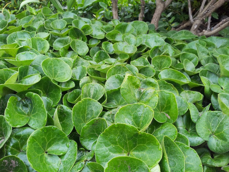 Вечнозеленый стелющийся многолетник высотой 10 см. Листья темно-зеленые, формой напоминающие лошадиное копыто, цветы коричневые, невзрачные, под листьями. Тень, влага.