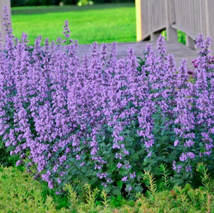 Многолетник с сильно разветвленными стелющимися побегами. Листья серо-зеленые, цветы сиреневые, собраны в колосовидные соцветия с мая до сентября. Высота 30 см. Не требователен.