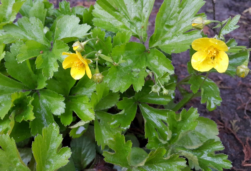 Вечнозеленый почвопокровный многолетник для тенистых мест. Блестящие, темно-зеленые листья и крупные желтые цветы в апреле-мае.